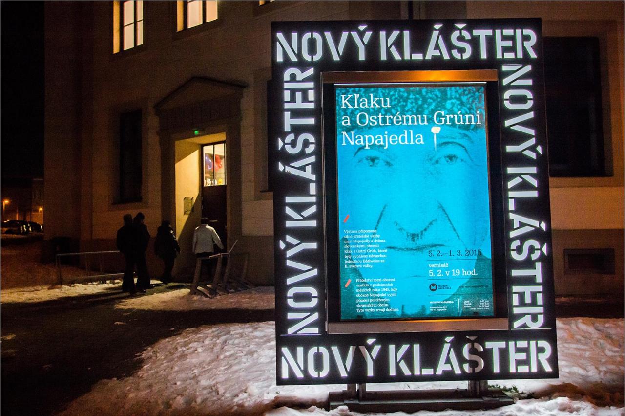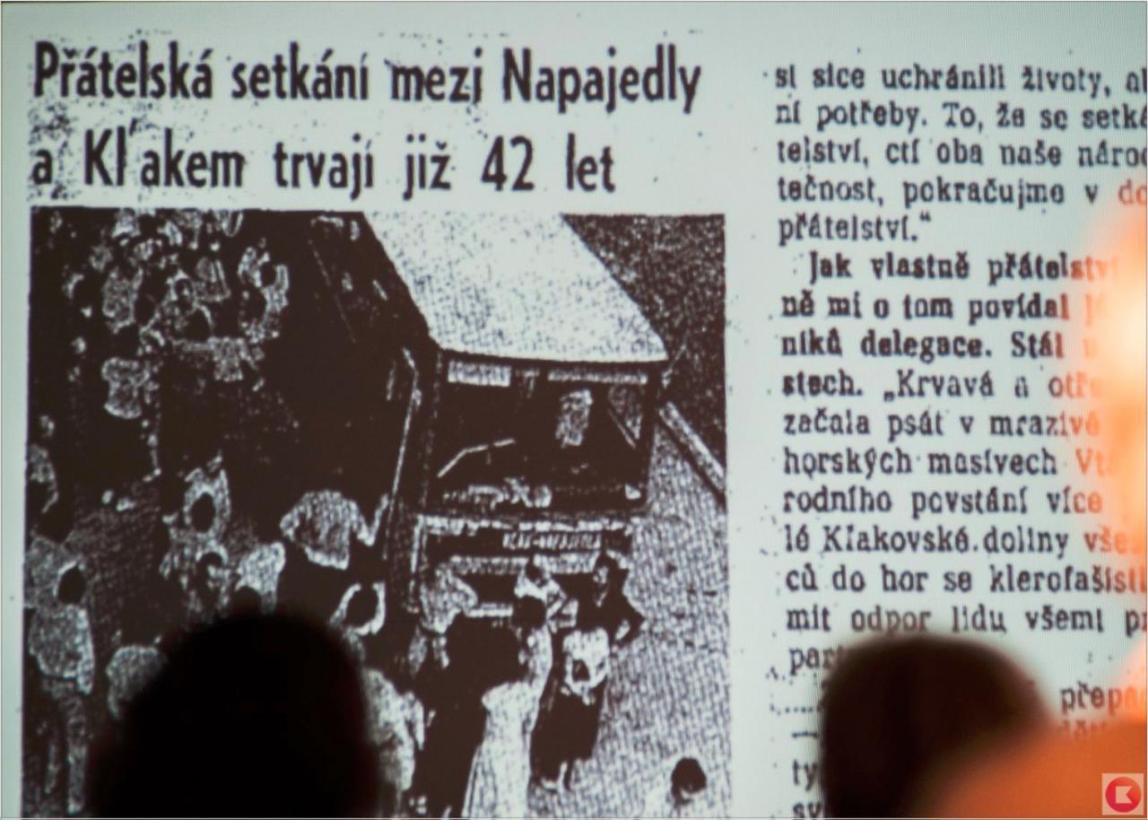 Vernisáž výstavy Kľaku a Ostrému Grúni Napajedla se uskutečnila 5. 2. 2015 ve výstavním sále Muzea Napajedla. Výstava připomněla silné přátelské vazby mezi Napajedly a dvěma slovenskými obcemi.