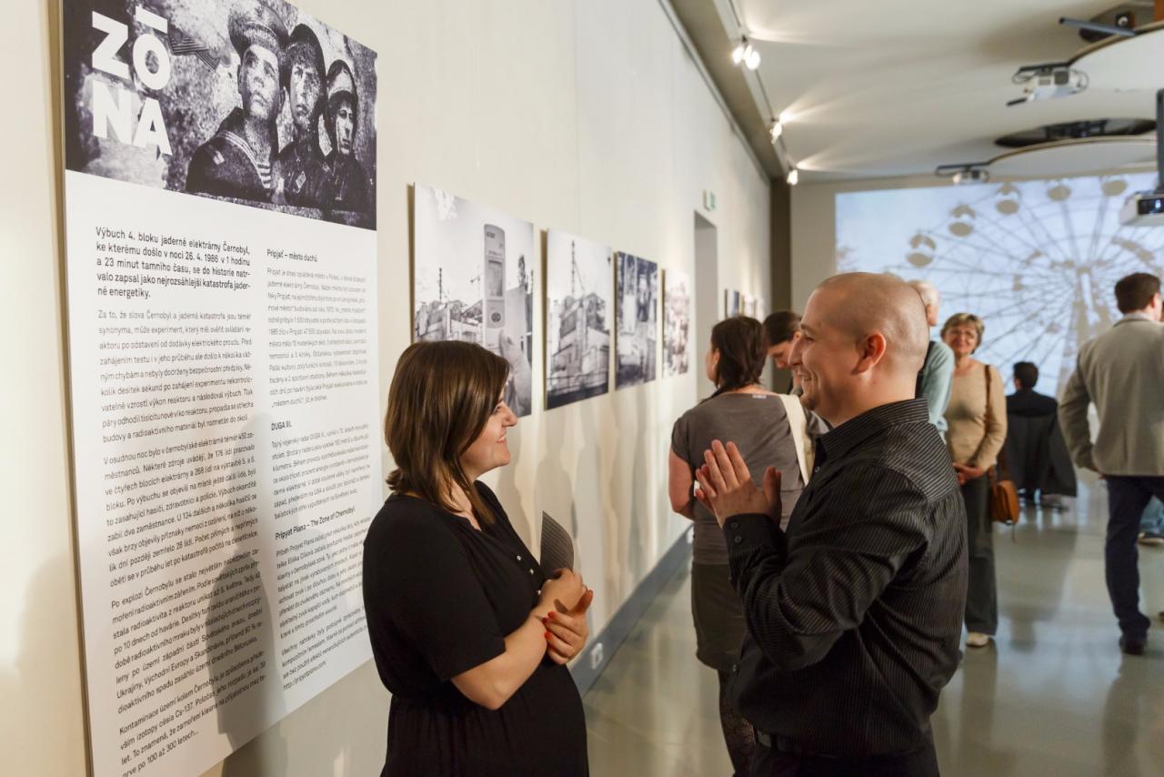 Vrací se nejen do minulosti, ale ve fotografiích Luďka Ovesného a souboru skladeb Elišky Cílkové ukazuje také současnou podobu Černobylu a zejména přilehlé oblasti Pripjať – města duchů v těsné blízkosti elektrárny, které bylo svými 47 500 obyvateli ze dne na den opuštěno. Vernisáž se konala ve čtvrtek 21. dubna v 19 hodin.