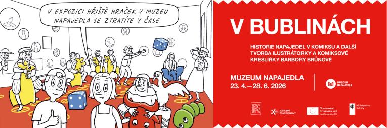 Výstava V bublinách představuje tvorbu ilustrátorky a komiksové kreslířky Barbory Brůnové, známé pod značkou BBB ilustrace. Ústředním prvkem výstavy je komiks věnovaný historii Napajedel, vytvořený ve spolupráci se spisovatelkou Petrou Braunovou. Desetistránkový příběh je pro tuto příležitost prezentován na velkoformátových plakátech a současně je k dispozici ve formě malého leporela, které může sloužit i jako (d)omalovánka.